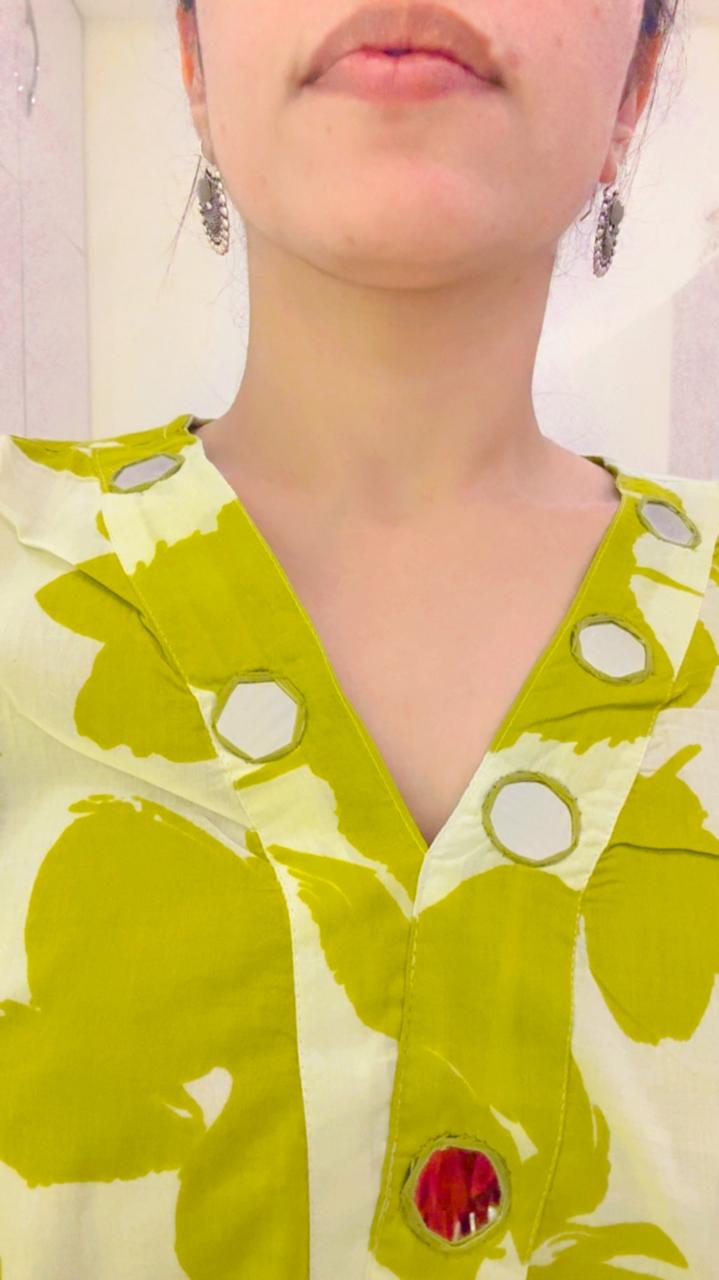 Cotton based floral co-ord set with mirrors on neckline perfect to beat the summer.