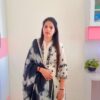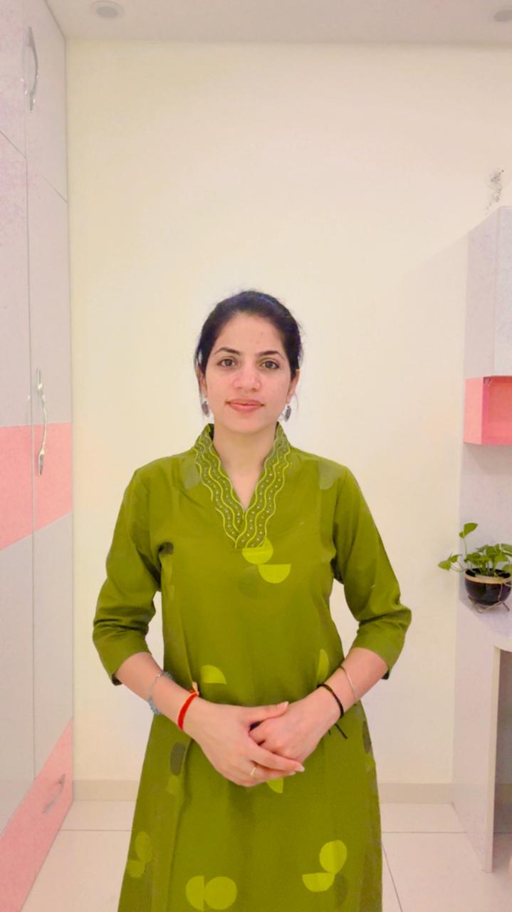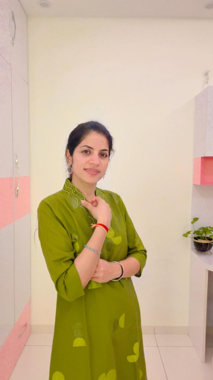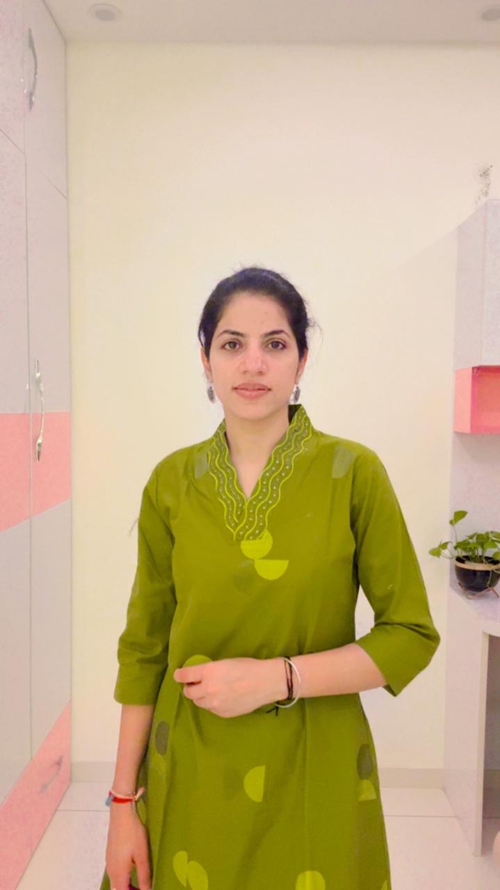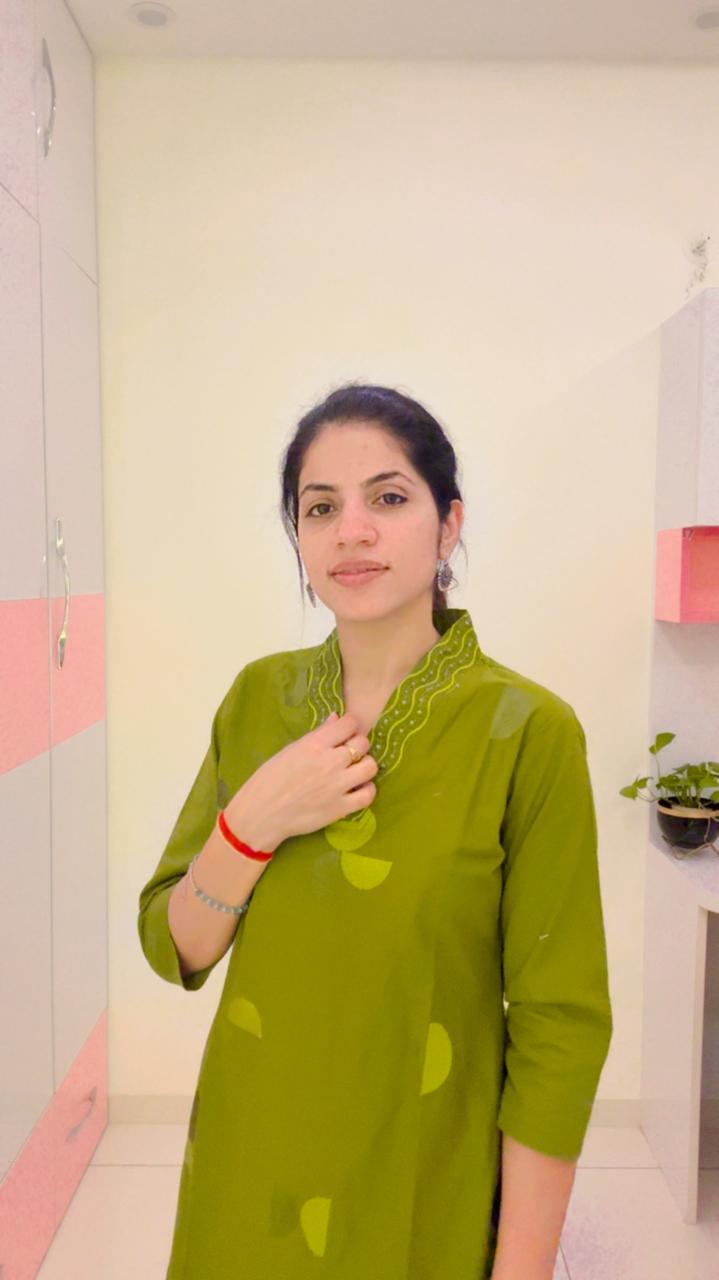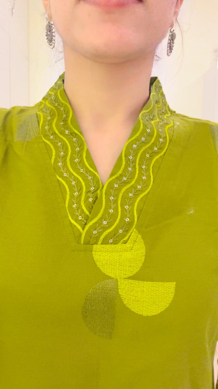 Elevate your everyday ethnic wear. This A-line co-ord set features a rich moss-green base adorned with minimalist lime-green circular motifs.
