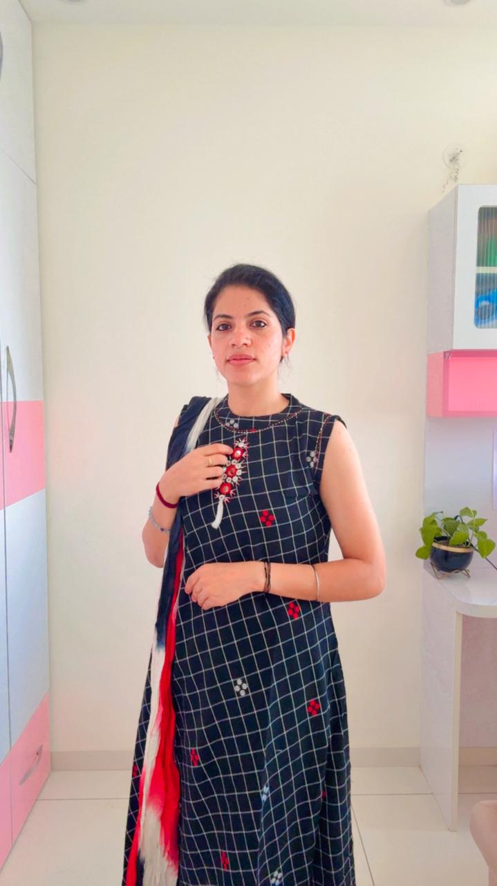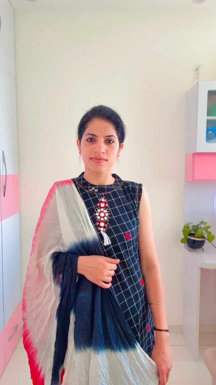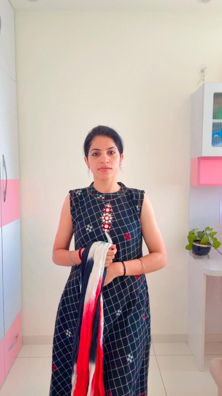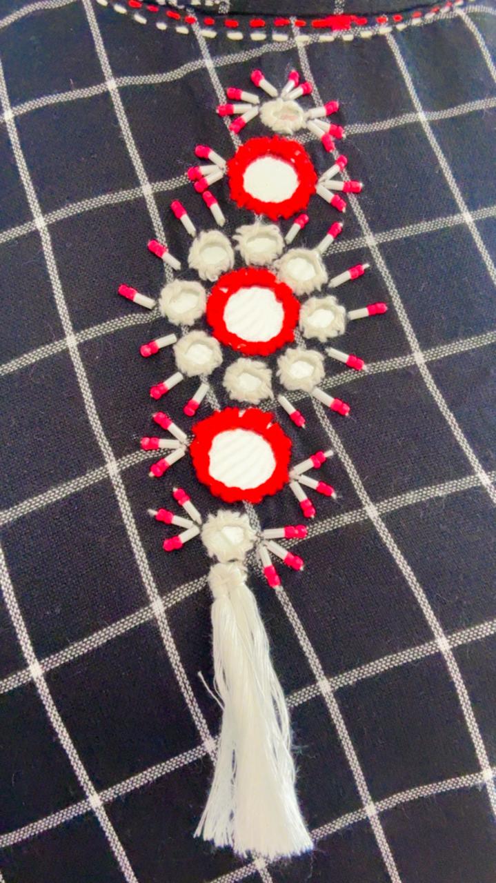 Elevate your ethnic wardrobe with this striking Handcrafted Mirror Work Kurta, where traditional charm meets modern geometric patterns.